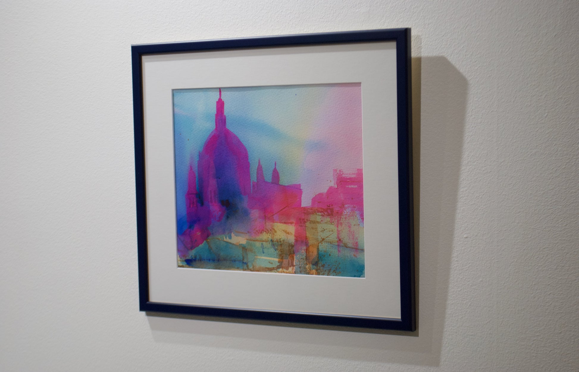 Målningen är skapad med professionella akvarellfärger på bomullsduk av hög kvalitet, och ramas in för hand i en skräddarsydd ram.